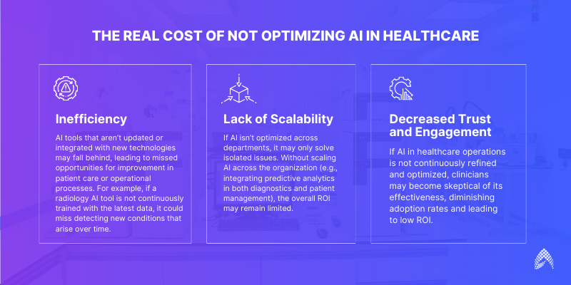 By not optimizing AI solutions after the initial implementation, healthcare organizations risk missing out on significant long-term benefits. Without optimization, they are effectively leaving money on the table.