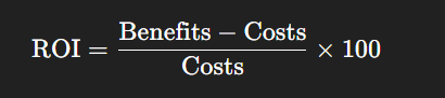 Once you have all the costs and benefits, you can calculate the ROI using the basic formula: